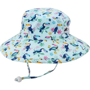 All hats are first quality and the last few of a discontinued print. Take advantage of this sale to grab a few extra Puffin Gear® hats for school, daycare or camp. Rated UPF 50+ with a wide brim for maximum sun protection. A chin tie with cord lock and breakaway clip keeps hat safely secure. Hats are preshrunk and machine washable.