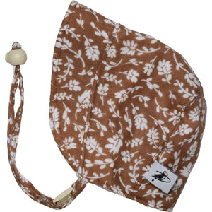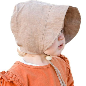Puffin Gear's beautiful fall bonnets for infants and toddlers have a cozy organic cotton flannel lining for cooler days. Choose from 100% linen or beautiful organic cotton prints.