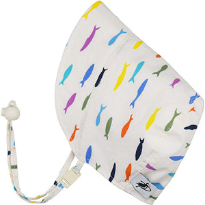 Puffin Gear®'s adorable bonnets provide full coverage of infant's head. Rated Excellent Sun Protection UPF 50+ our bonnets block at least 97.5 % broad spectrum UVA and UVB radiation. A chin tie with cord lock and breakaway clip keeps bonnet safely secure.  Hats are preshrunk and machine washable. So many beautiful prints to choose from.  A lovely gift for a spring baby.