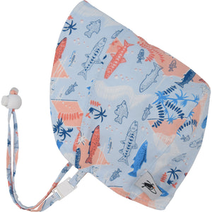 Puffin Gear®'s adorable bonnets provide full coverage of infant's head. Rated Excellent Sun Protection UPF 50+ our bonnets block at least 97.5 % broad spectrum UVA and UVB radiation. A chin tie with cord lock and breakaway clip keeps bonnet safely secure. Hats are preshrunk and machine washable. So many beautiful prints to choose from. A lovely gift for a spring baby.