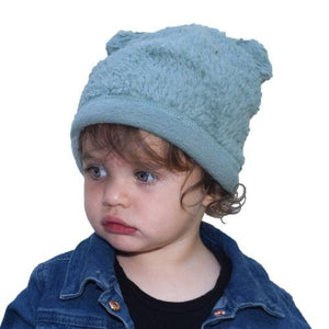 Soft and cozy organic cotton sherpa fleece beanie for cold weather, complete with the most irresistible ears.