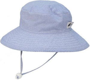 Play all day in this classic oxford cotton sunbaby hat by Puffin Gear®. Rated UPF 50+ with a wide brim for maximum sun protection. A chin tie with cord lock and breakaway clip keeps hat safely secure.