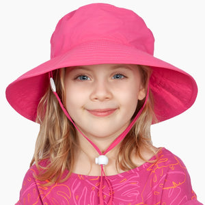 Puffin Gear®'s quick dry solar nylon sunshine hat has a wide brim for maximum sun protection. UPF 50+ sun protection rating makes it a must for outdoor play. A chin tie with cord lock and breakaway clip keeps hat safely secure.