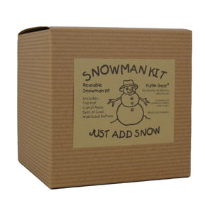 Everything you need for an afternoon of snowman building fun. Puffin Gear®'s kit includes a Canadian made floppy hat, plastic carrot nose, lumps of genuine coal for eyes, and 3 waistcoat buttons. Get outside and play!
