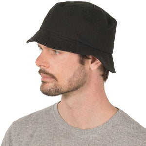 Our rugged linen bucket hat is perfect for active days or just hanging out. A narrow two inch sloped brim provides relaxed style. Choose from classic black or rich autumn colours. Linen is pre-washed and shrunk.