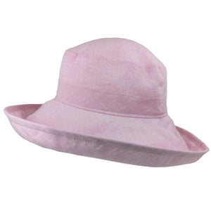 Hand wash your hat in cool or lukewarm water with a gentle detergent. We prewash our linen fabrics so shrinkage is not a concern. Our wide brim hats have a millinery wire at the edge of the brim to prevent flopping and the wire may be bent by a washing machine. Air dry your hat in the shade. Placing it over a vase prevents wrinkling in the crown. Iron the brim if needed using a slightly damp towel between the iron and brim. A steaming tea kettle will remove wrinkles from the crown. Do not place hot iron directly on inside crown lining. Do not bleach. Do not dryclean. |