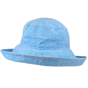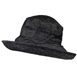 Lightweight linen chambray Classic hat by Puffin Gear® has a 4.5 brim for maximum sun protection. A chambray weave has an alternating white thread adding texture while maintaining the lightweight breath-ability of linen. Wired brim can be rolled up or down.