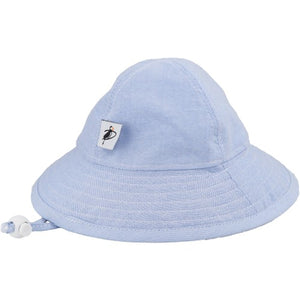 Classic Oxford Cotton hats are easy to co-ordinate with any of baby's outfits. Rated UPF50+ our sunbeam hat blocks at least 97.5% broad spectrum UVA and UVB radiation. Fabrics are prewashed and shrunk. A chin tie with cord lock and breakaway clip keeps hat safely on head.